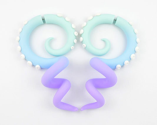 Light Purple Tentacle Earrings, Pastel Tentacle Gauges and Fake Gauges