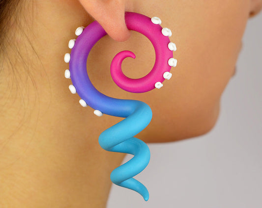 Hot Pink and Turquoise Ombre Tentacle Earrings Real & Fake Ear Gauges