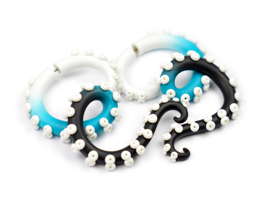 White Turquoise Black Ombre Octopus Tentacle Earrings Fake Gauges Plugs