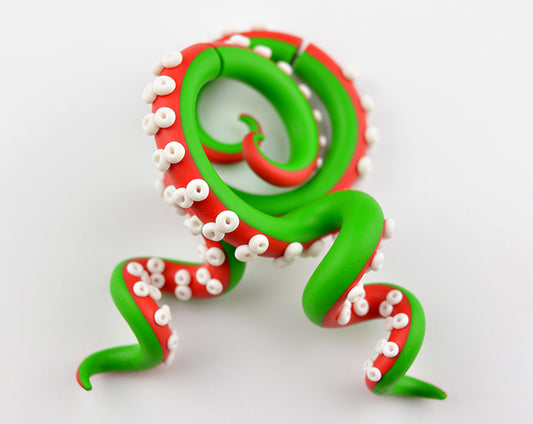 Red White and Green Christmas Lightweight Xmas Octopus Tentacle Earrings