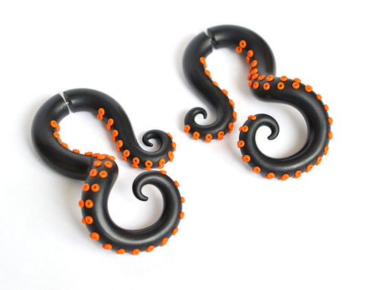 Tentacle Pumpkin Earrings Black Orange Halloween Earrings and Halloween Gauges
