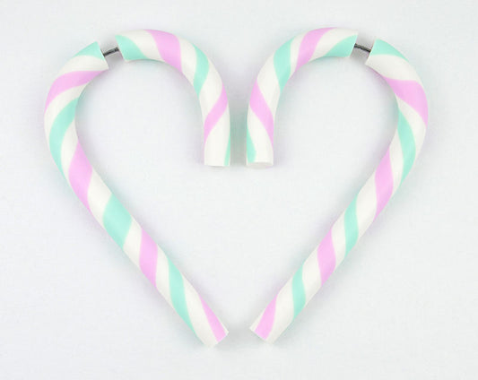 Christmas Candy Cane Earrings Pastel Kawaii Christmas Fake Gauges