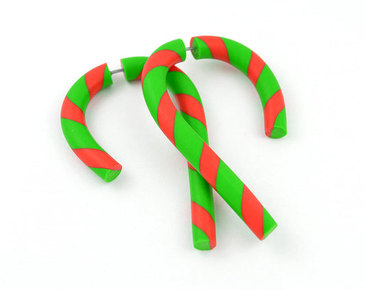 Red Green Christmas Earrings Candy Cane Fake Gauges Body Jewelry