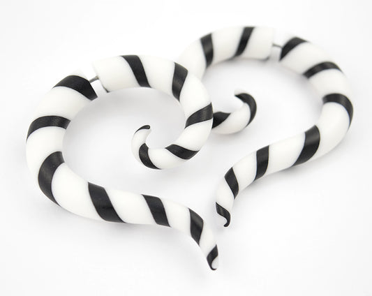 Schwarz-weiß gestreifte Ohrringe Halloween Sandwurm Fake Gauge Ohrringe Ohrkegel