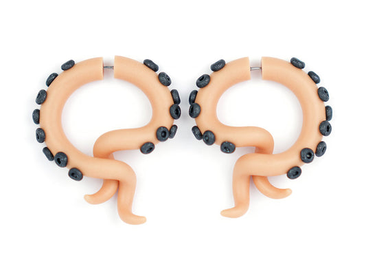 Beige Oktopus-Tentakel-Ohrringe – Fake-Tentakel-Messgeräte oder Oktopus-Ohrstecker, Fake-Plugs
