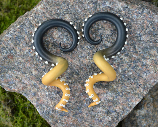 Schwarze und goldene Ombre Goth Tentakel-Ohrringe und Tentakel-Messgeräte