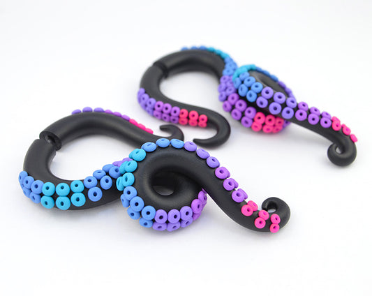 Weiß Lila Schwarz Oktopus Tentakel Ohrringe Fake Gauge Ohrringe