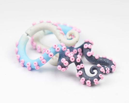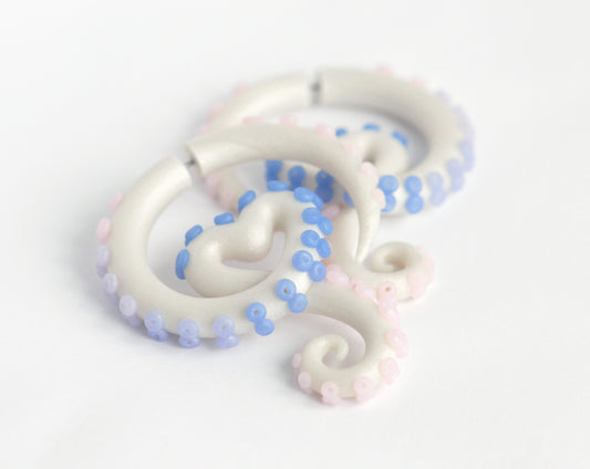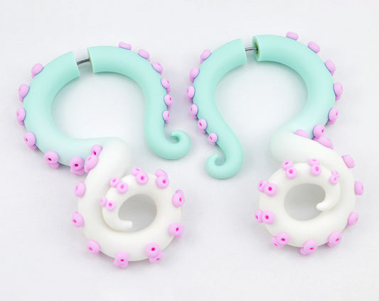 Pastell Goth Weiß bis Rosenquarz Ombre Tentakel Ohrringe oder Tentakel Messgeräte