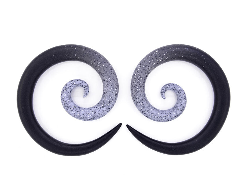 Schwarze Spiral-Creolen, Spiral-Gauge-Ohrringe und Fake-Gauges-Fake-Plugs