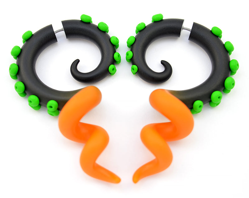 Um die Lebensdauer Ihrer Tentakel-Ohrringe zu verlängern, tragen Sie sie nicht beim Schlafen oder beim Duschen/Baden. Sie sind auch nicht dazu gedacht, Ihre Lappen zu dehnen! POLYMERTON IST ANDEREN ORGANISCHEN PORÖSEN MATERIALIEN SEHR ÄHNLICH UND SOLLTE NUR IN GEHEILTEN OHREN GETRAGEN WERDEN!