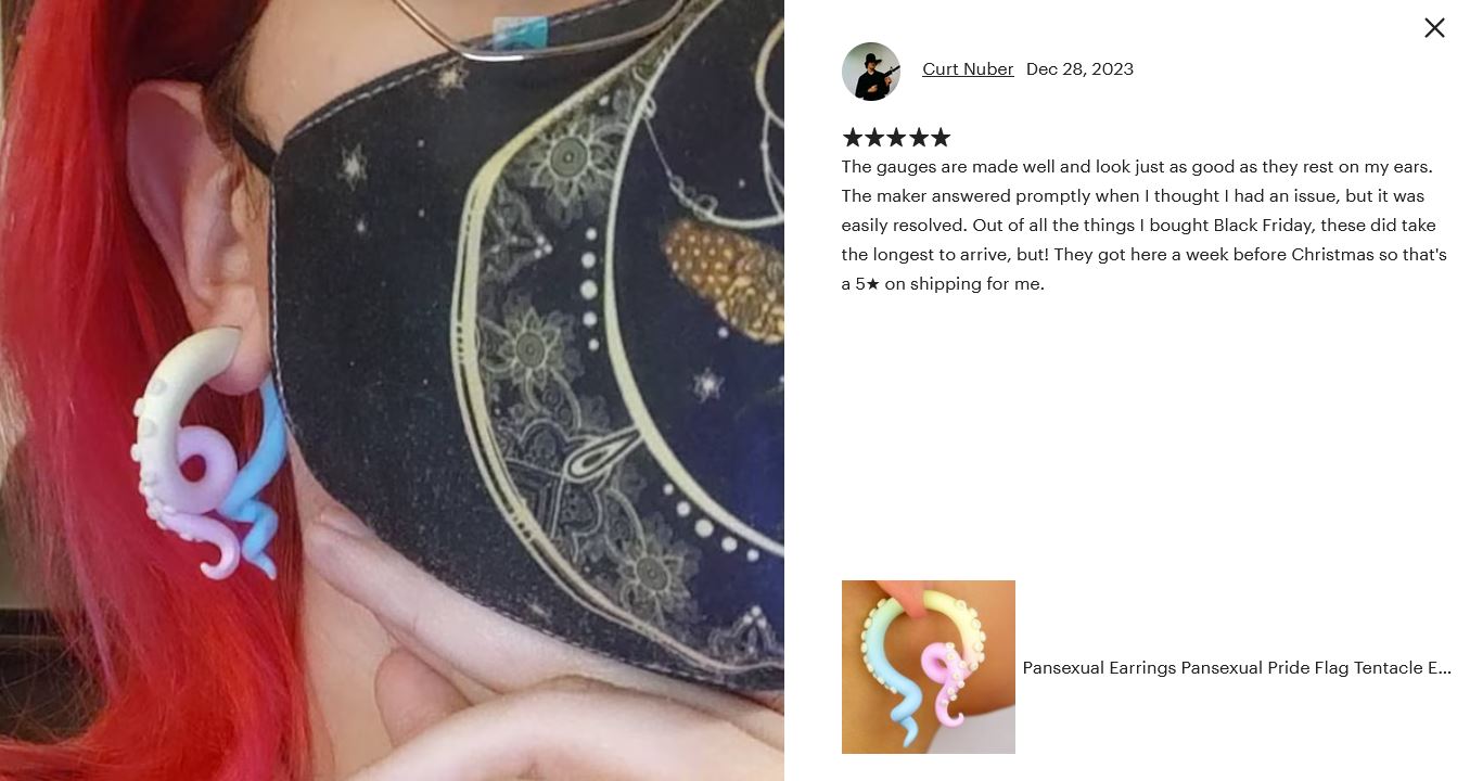 Um die Lebensdauer Ihrer Tentakel-Ohrringe zu verlängern, tragen Sie sie nicht beim Schlafen oder beim Duschen/Baden. Sie sind auch nicht dazu gedacht, Ihre Lappen zu dehnen! POLYMERTON IST ANDEREN ORGANISCHEN PORÖSEN MATERIALIEN SEHR ÄHNLICH UND SOLLTE NUR IN GEHEILTEN OHREN GETRAGEN WERDEN!