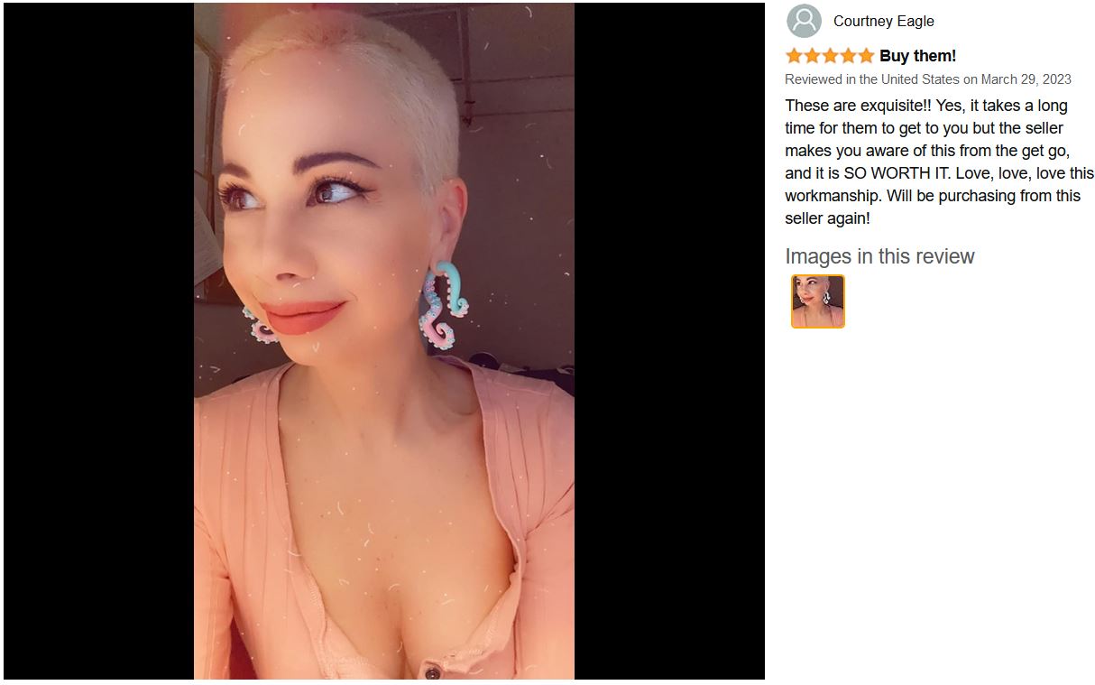 Foto des Modells mit von mir gefertigten Ohrringen von Instagram @charteus_macadam
