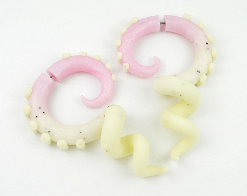 Rosenquarz Weißer Marmor Nightglow Oktopus Tentakel Ohrringe Ohrstöpsel