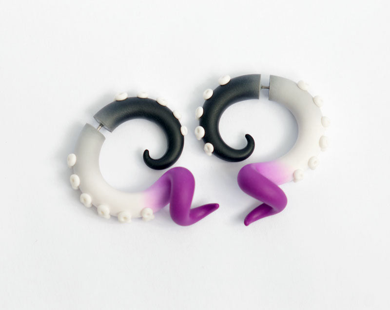 Ich habe mich für diese Tentakel-Ohrringe entschieden, da ich oft Anfragen nach kleinen Ohrsteckern bekomme. Sie könnten an diesen gefälschten Tentakelmaßen interessiert sein, wenn Sie kleine Ohrstecker oder kleine Creolen mögen. Asexuelle Ohrringe zur Feier des asexuellen Stolzmonats. Ich habe die Farben Schwarz, Grau, Weiß und Lila verwendet. Die LGBTQIA+ Day-Ohrringe von Tania Chernova.