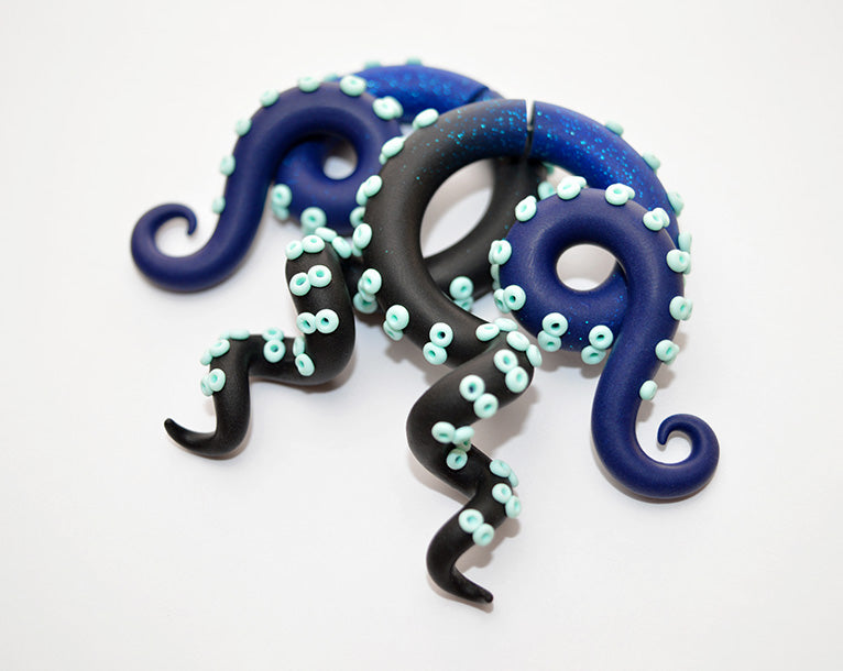 Um die Lebensdauer Ihrer Tentakel-Ohrringe zu verlängern, tragen Sie sie nicht beim Schlafen oder beim Duschen/Baden. Sie sind auch nicht dazu gedacht, Ihre Lappen zu dehnen! POLYMERTON IST ANDEREN ORGANISCHEN PORÖSEN MATERIALIEN SEHR ÄHNLICH UND SOLLTE NUR IN GEHEILTEN OHREN GETRAGEN WERDEN!