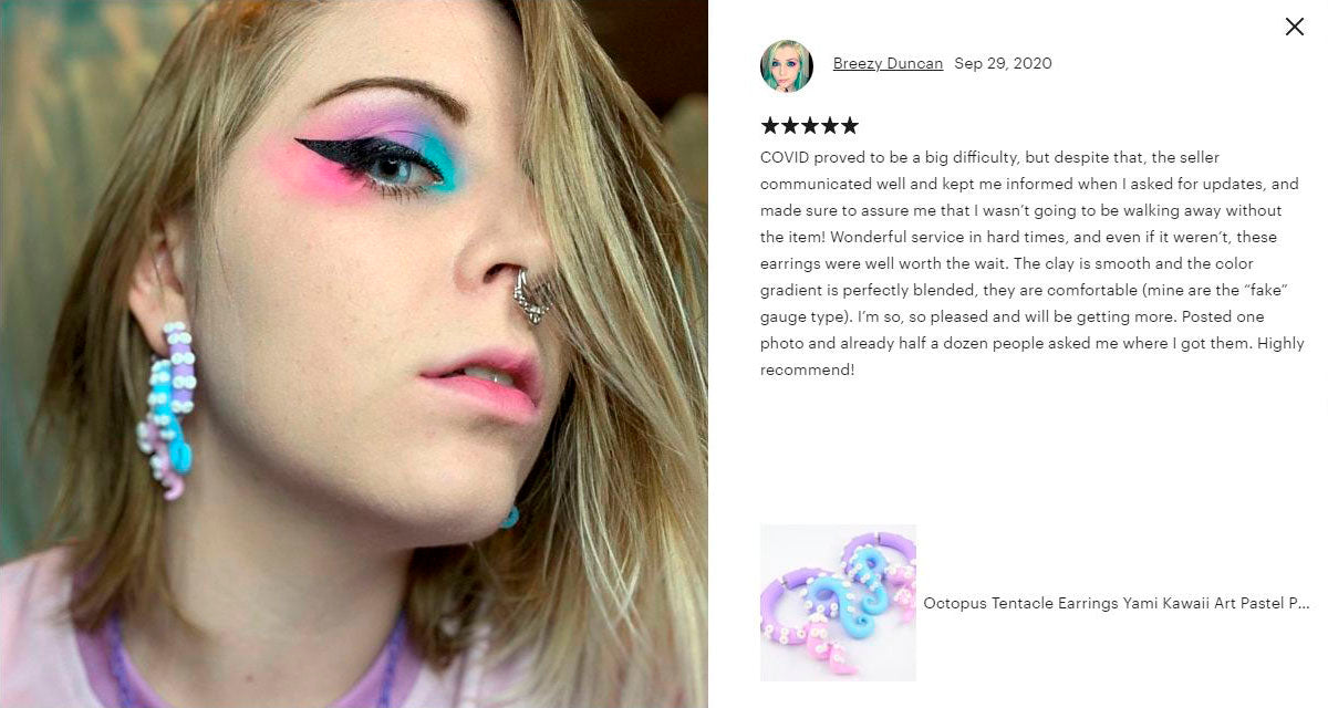 Foto des Modells mit von mir gemachten Ohrringen von Instagram @breelimepiecosplay