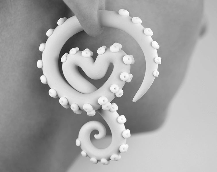 Um die Lebensdauer Ihrer Tentakel-Ohrringe zu verlängern, tragen Sie sie nicht beim Schlafen oder beim Duschen/Baden. Sie sind auch nicht dazu gedacht, Ihre Lappen zu dehnen! POLYMERTON IST ANDEREN ORGANISCHEN PORÖSEN MATERIALIEN SEHR ÄHNLICH UND SOLLTE NUR IN GEHEILTEN OHREN GETRAGEN WERDEN!