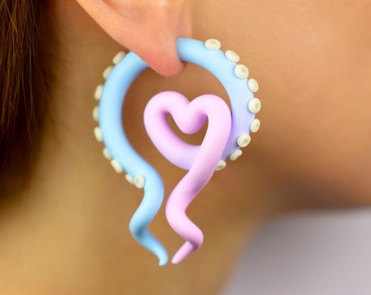Boucles d'oreilles cœur rose Boucles d'oreilles Night Glow Octopus Tentacule Jauges