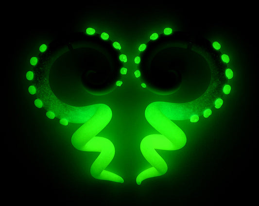 Boucles d'oreilles phosphorescentes Artisan Octopus Tentacle Boucles d'oreilles Jauges d'oreille