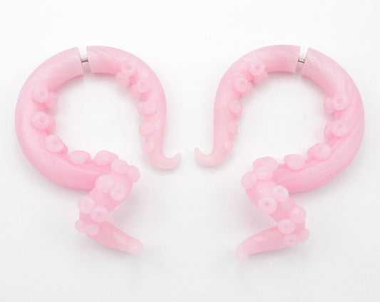 Pastel Goth White to Rose Quartz Ombre Tentacle Boucles d'oreilles ou Jauges de tentacule