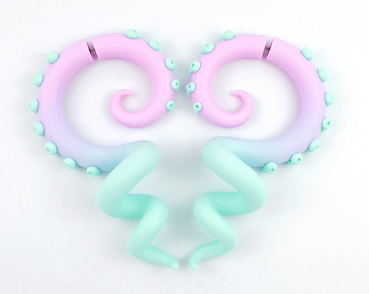 Pastel Ombre Menthe et Jauges d'oreille rose clair Boucles d'oreilles Octopus Tentacle