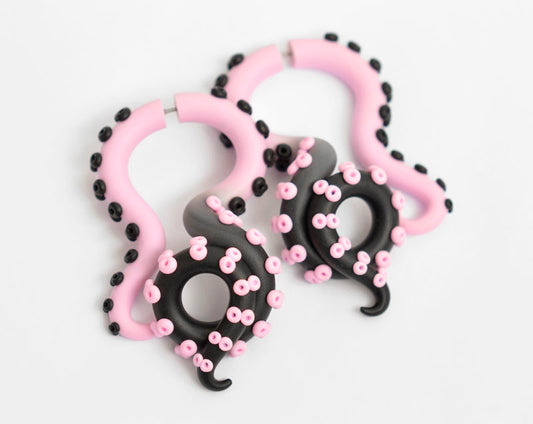 Boucles d'oreilles rose Goth Aesthetic Gauge Boucles d'oreilles tentacule par Tania Chernova Fake Gauges
