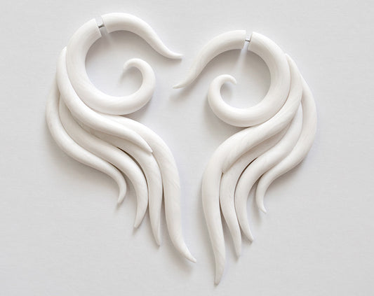 Boucles d'oreilles en forme de tentacule de poulpe blanc nacré Boucles d'oreilles en fausse jauge de glace arctique et jauges d'oreille réelles