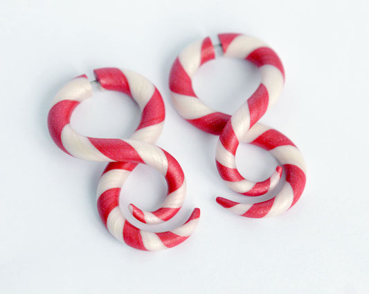 Red White Earrings Christmas Fake Gauge Earrings and Real True Candy Cane Plugs