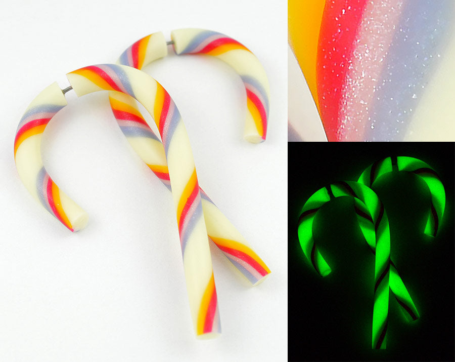 Boucles d'oreilles Joyeux Noël Candy Cane Jauges et Boucles d'oreilles Faux Jauge